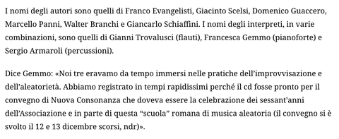 Composer(s): Domenico Guaccero, Franco Evangelisti, Giacinto Scelsi, Giancarlo Schiaffini, Marcello Panni, Walter Branchi