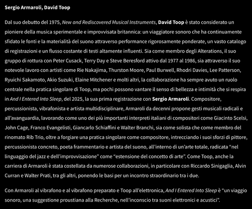 November: ALL YOU CAN’T EAT, sound installation in Bergamo for ArtDate, including performance with Sergio Armaroli on 15 Nov, Monastero del Carmine, Città Alta (more to come)