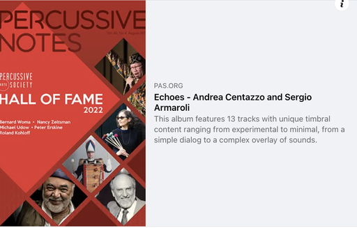 This CD is unique, and the musicianship of both performers is superb. Congratulations to Andrea Centazzo and Sergio Armaroli for their dedicated work and collaborative, improvisatory sensitivity and musical dialogue.